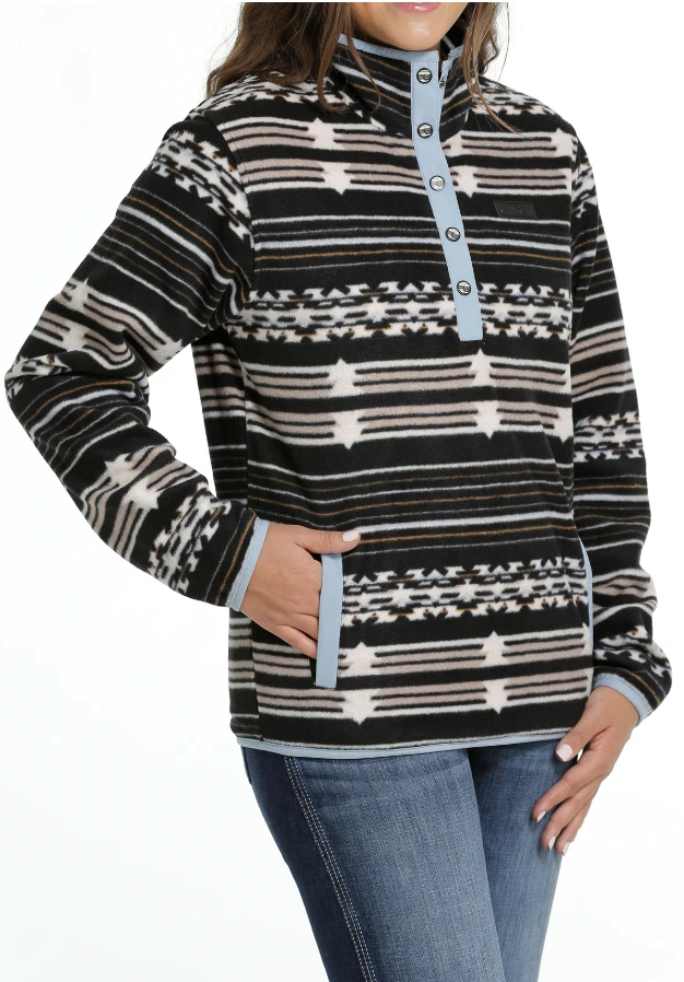 Cinch Cinch Ladies Black Stiped Fleece Pullover